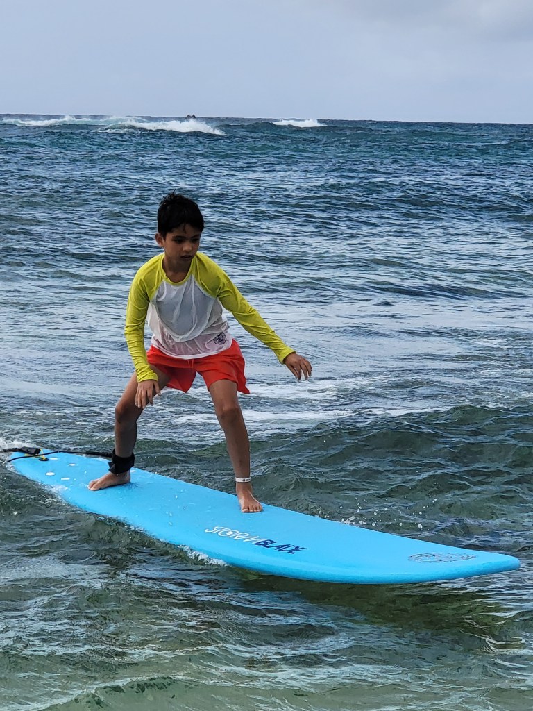 Other than reading and writing, I also like to learn new things or sports when I can. The picture below is of me in Kauai, Hawaii where I learned how to surf. It was so much fun! You should try it too when you get a chance.
